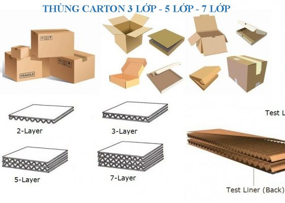 | Thùng Carton 3 lớp | Thùng Carton 5 lớp | Thùng Carton 7 lớp | |